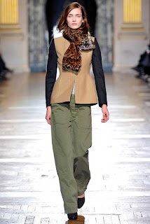 You see that touch in the way his pants start out with a lot of volume on top, but gradually reduce down by way of straps and zippers as your eye descends to the feet. You see it in his use of leopard print and muted floral patterns; not two things you would ever put together, but in his hands they seem right. You see it in his layering, and in something as simple, but so beautiful, as his slouchy cut-off sleeves.